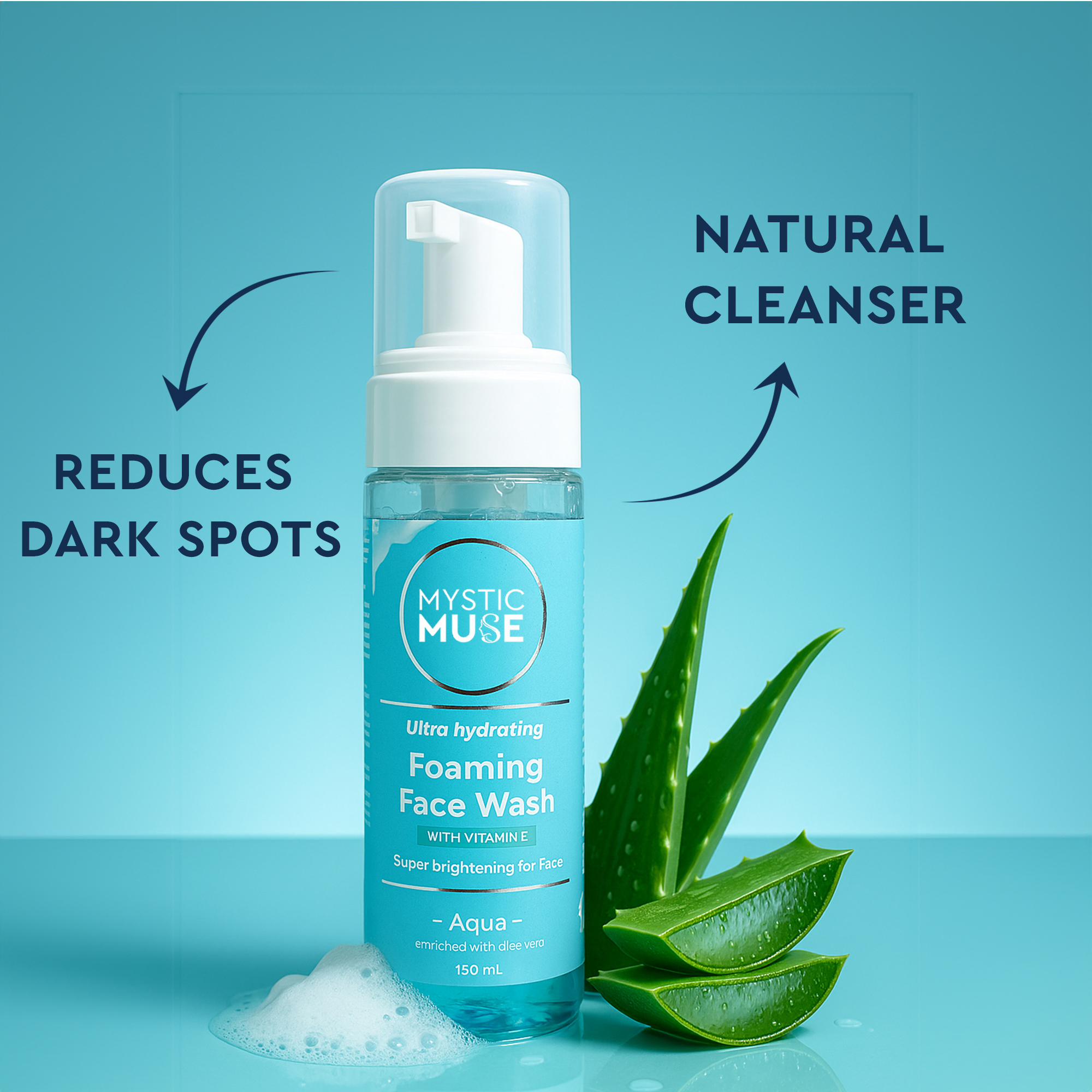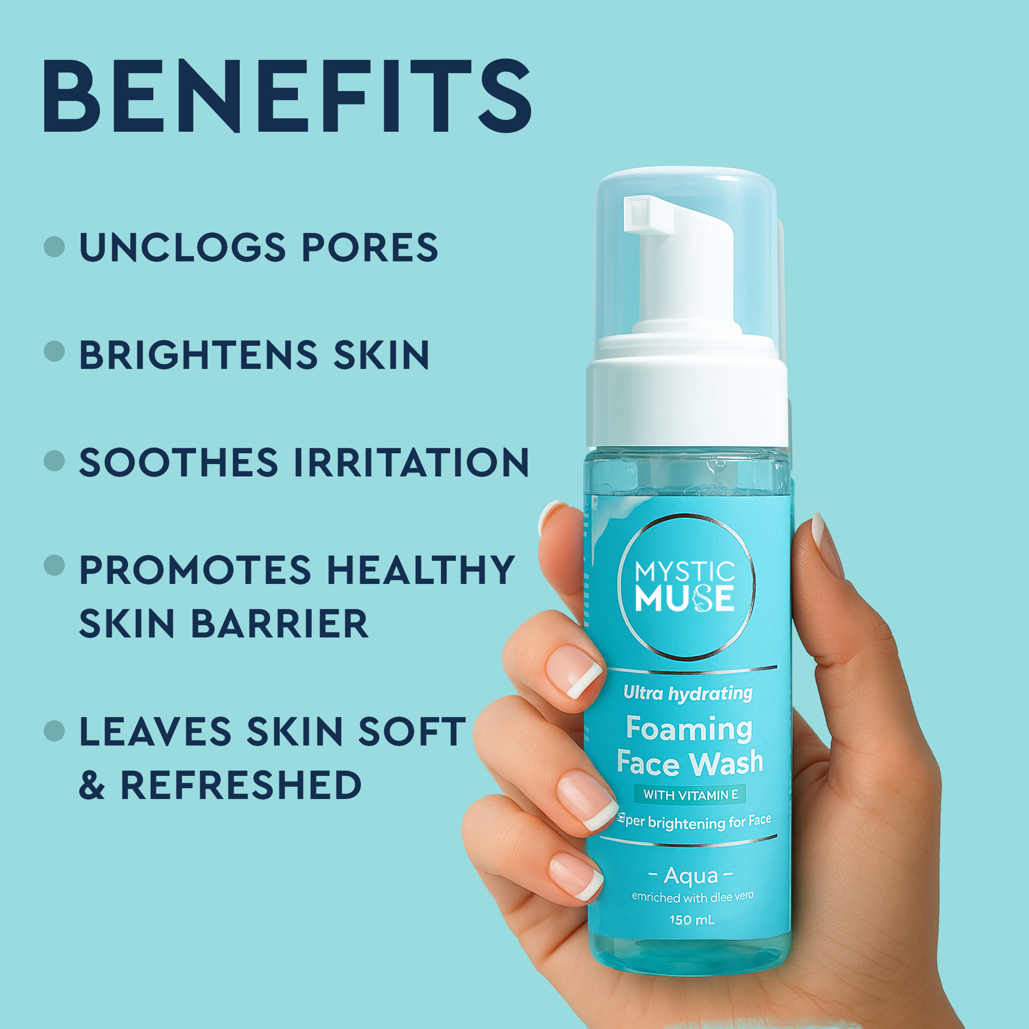 Mysticmuse Aqua Foam Face Wash is a type of facial cleanser known for its light, airy, and foamy texture when dispensed and applied. The term “aqua” typically indicates a water-based formulation designed for gentle cleansing while helping to maintain the skin’s moisture.
