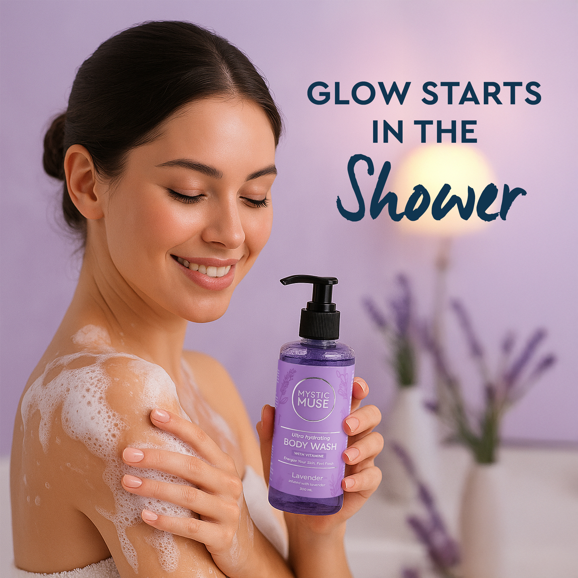 Unwind with Mysticmuse Natural Lavender Body Wash. This 300ml blend of lavender essence and aromatherapy oils offers a soothing shower experience, leaving your skin refreshed and your mind at ease.