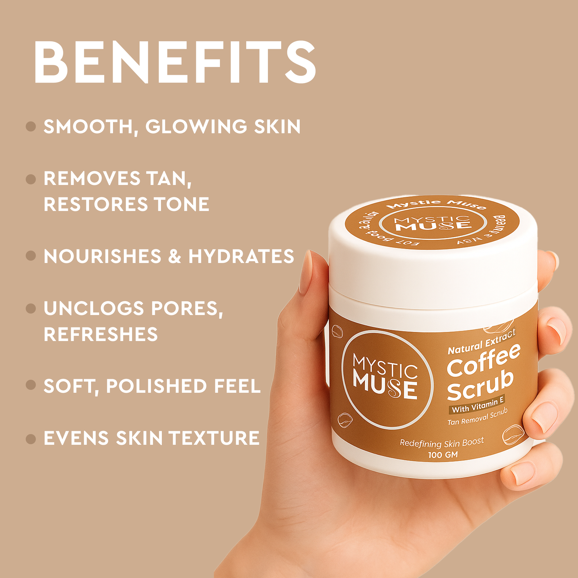 Mysticmuse coffee body scrub is an exfoliating treatment made with coffee grounds and other ingredients like oils and sugar. They work by gently buffing away dead skin cells to reveal smoother and brighter skin. Coffee body scrub can be an enjoyable and beneficial addition to your skincare routine, providing exfoliation, potential antioxidant benefits, and a pleasant aroma